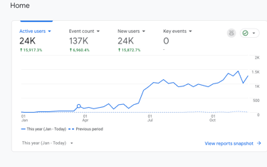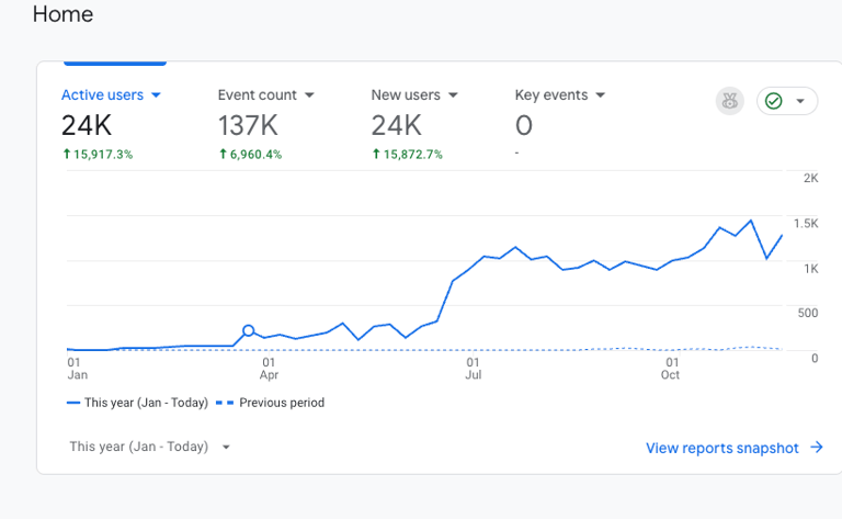 Within a year, the website went from zero to 24K active users, showing a dramatic 15,917% YoY growth β all from organic traffic.