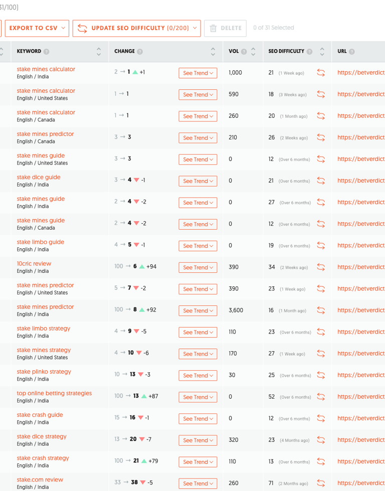 I focused heavily on Stake Originals, game strategy pages, and predictor guides β because these generate high-intent traffic.